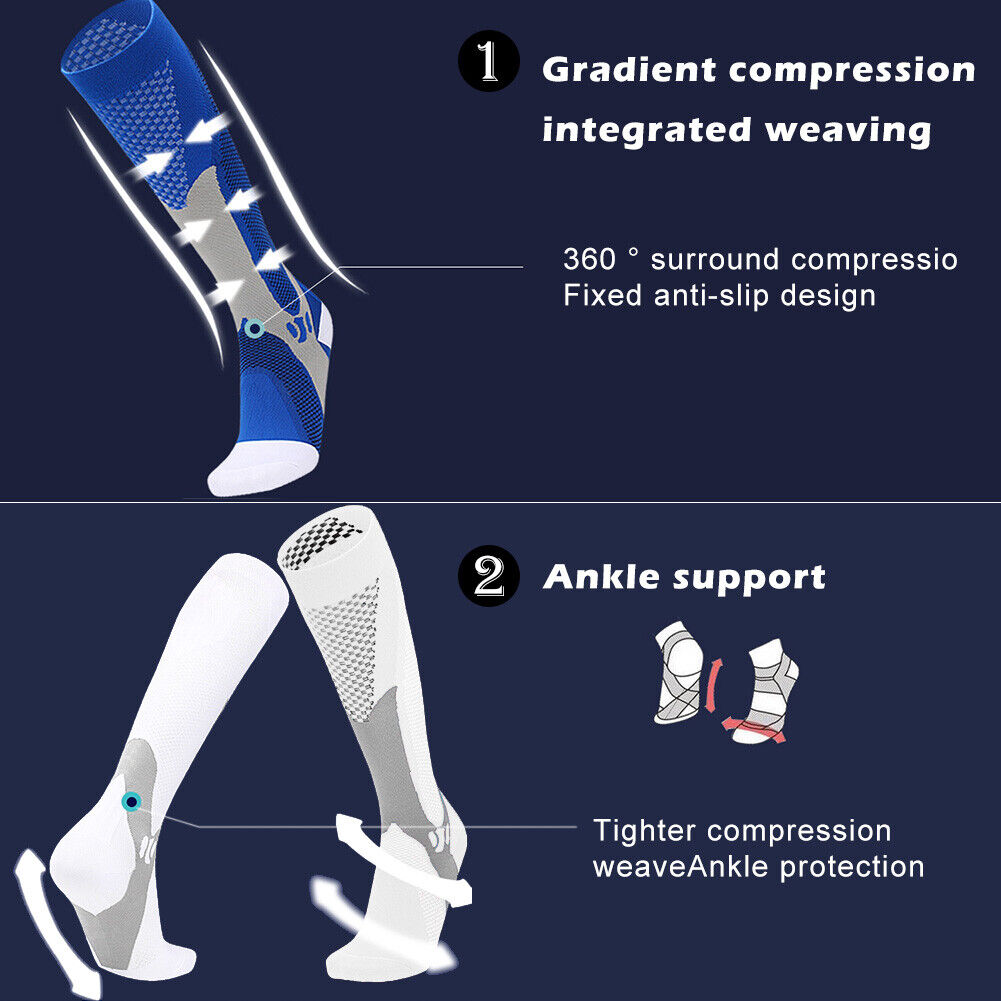Relieve leg pain and discomfort with our Compression Socks, designed for use during gym sessions, exercise routines, pregnancy, long drives, and travel. These socks alleviate leg fatigue, reduce swelling in the legs and feet, and keep them comfortable and dry. Whether for pain relief, prevention, or recovery, our socks provide versatile support.